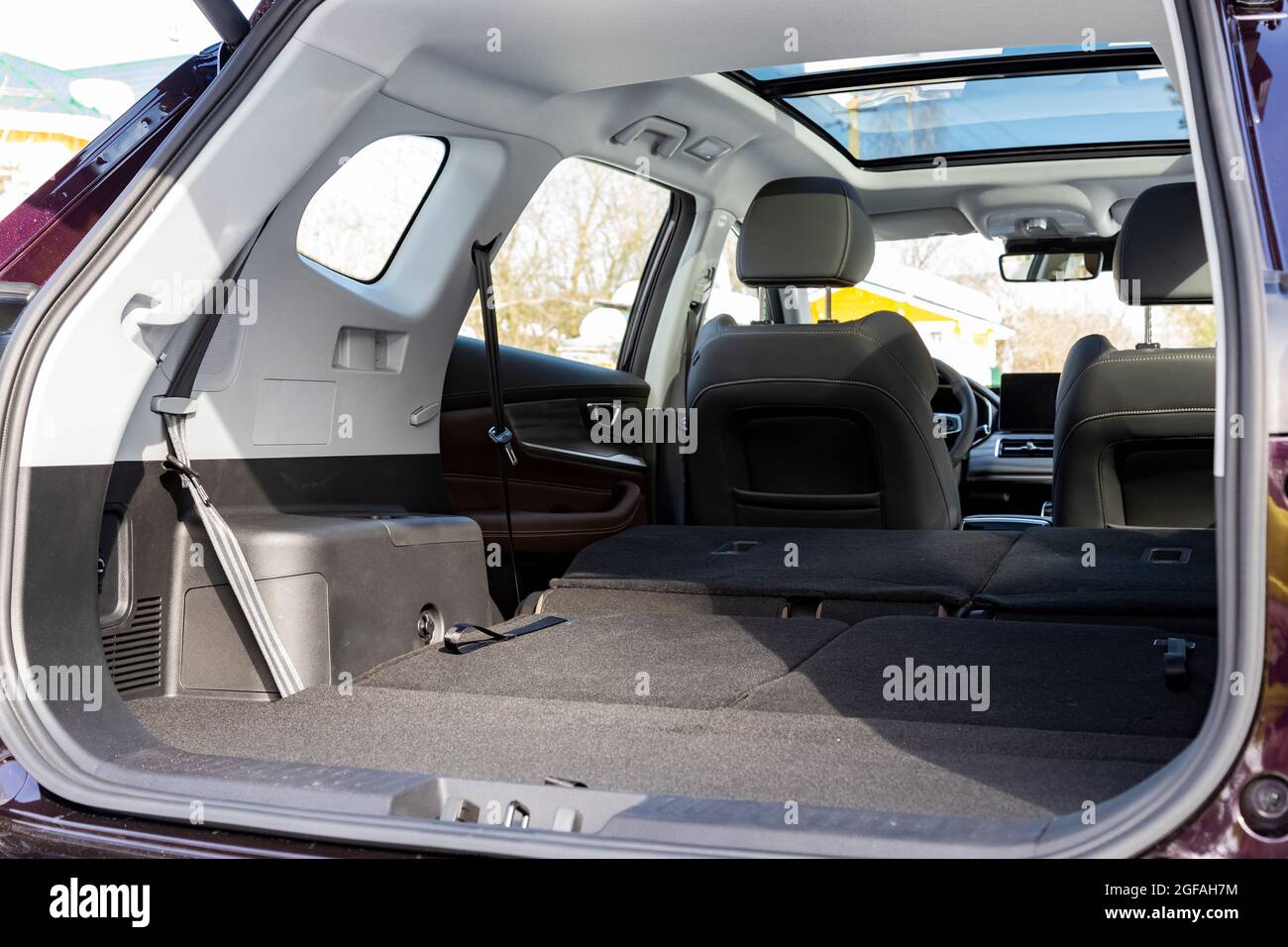 el interior de un coche enorme con los asientos traseros plegados abajo