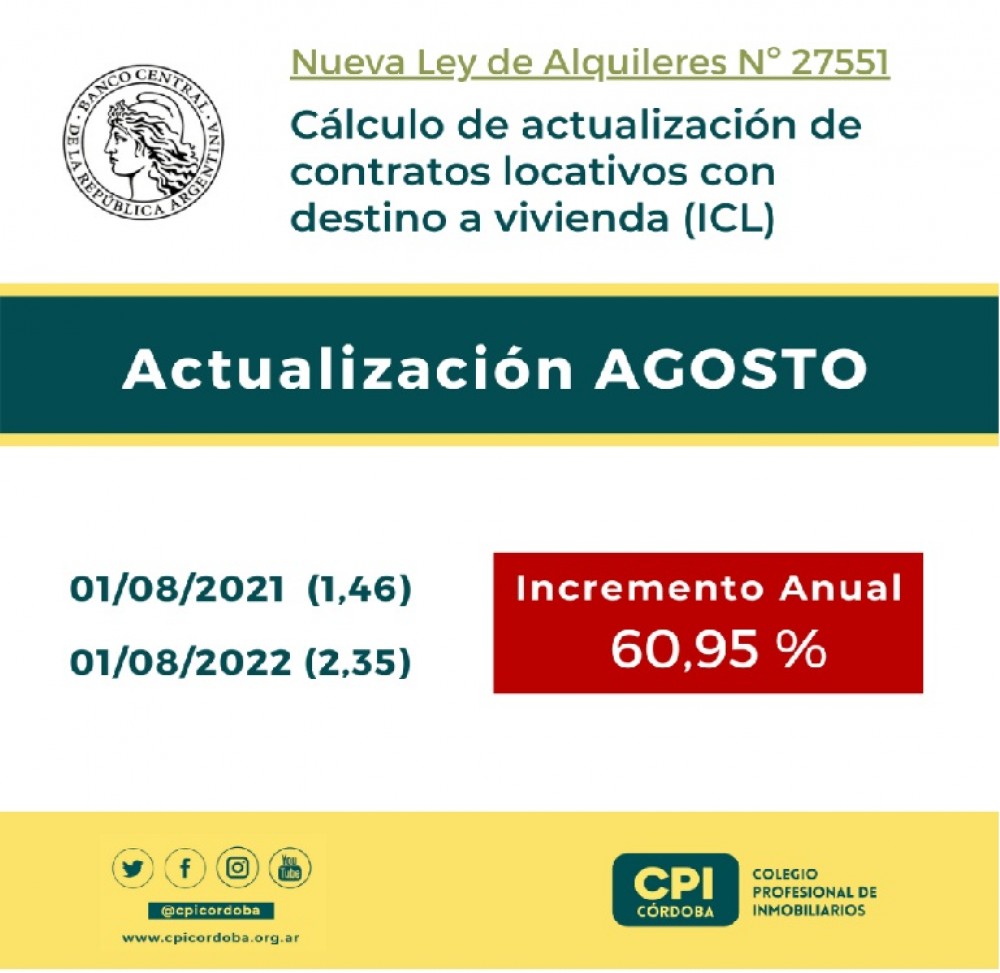 Índice de Contratos de Locación del Banco Central Aumento alquiler octubre 2022: cómo calcularlo y cuánto se pagará La Ley de Alquileres vigente establece ajustes anuales, por lo que quienes.