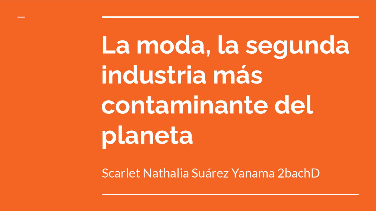 Fuente: ONU - Mc Kinsey - XL Semanal La moda es la segunda industria más contaminante. Tiene un impacto a menudo subestimado en el desarrollo de nuestro planeta. • Esta industria de 2,5 billones de dólares1 consume grandes cantidades de agua, y es responsable del 20% de la contaminación industrial del agua. • La producción de una camisa de algodón requiere una media de 2.700 litros.