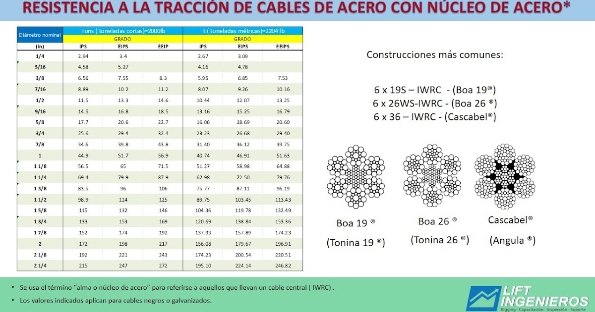 INGENIERÍA DE IZAJES Y MANIOBRAS EN PERÚ Resistencia a la tracción de cables de acero con