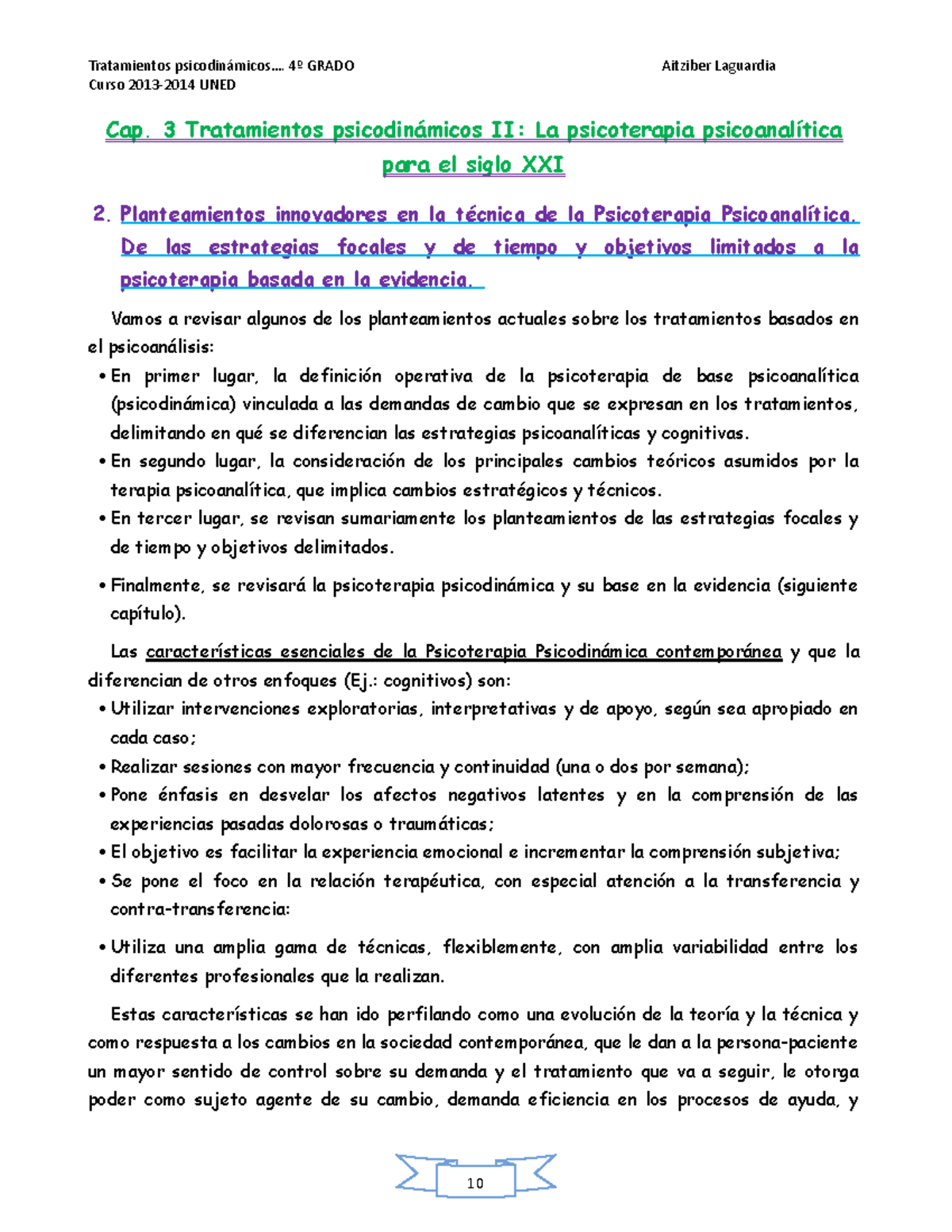 Ttos Cap 3 Tema 3 Curso 20132014 UNED Cap. 3 Tratamientos psicodinámicos II La
