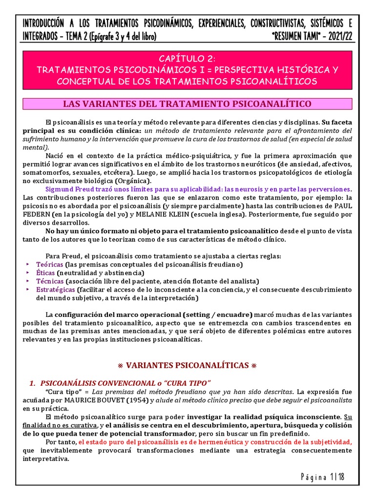 Tami Tema 2 (Introducción A Los Tratamientos Psicodinámicos) UNED PDF Psicoanálisis