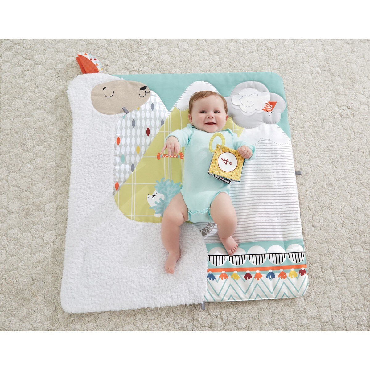 FisherPrice Gimnasio sensorial llama, manta de juego para bebés recién
