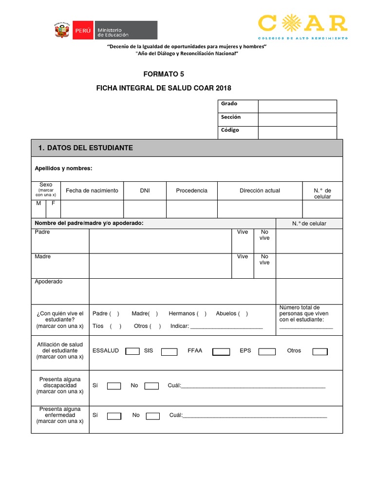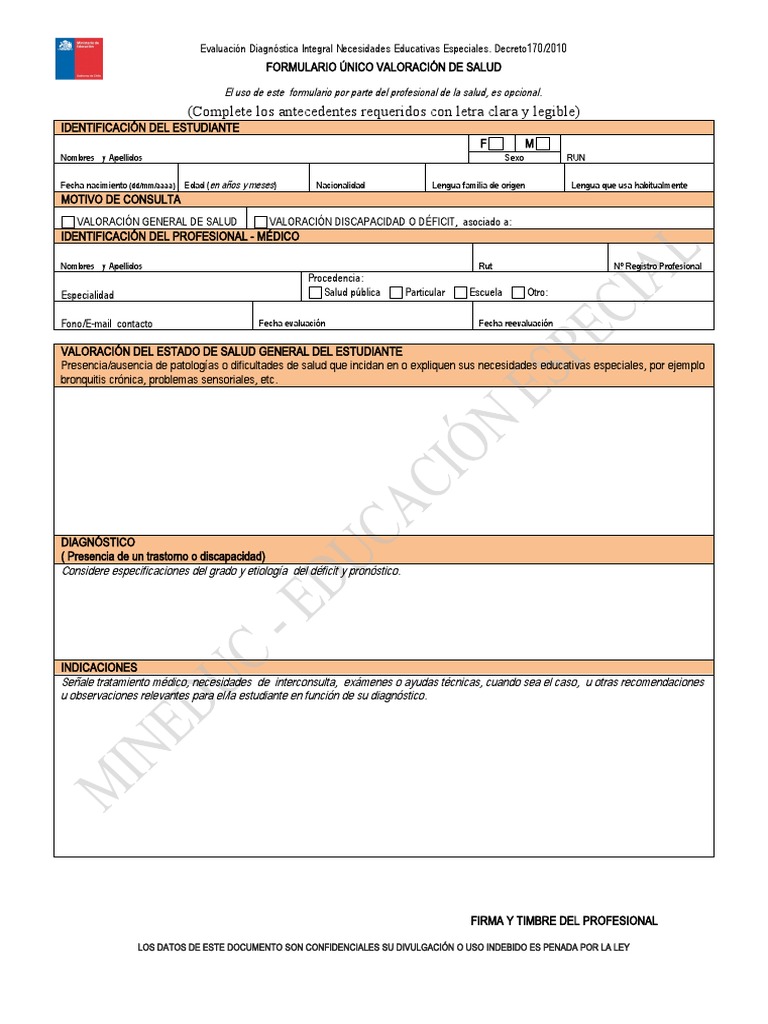 Formulario Unico Valoracion de Salud (Mineduc) PDF Enfermedades y trastornos humanos