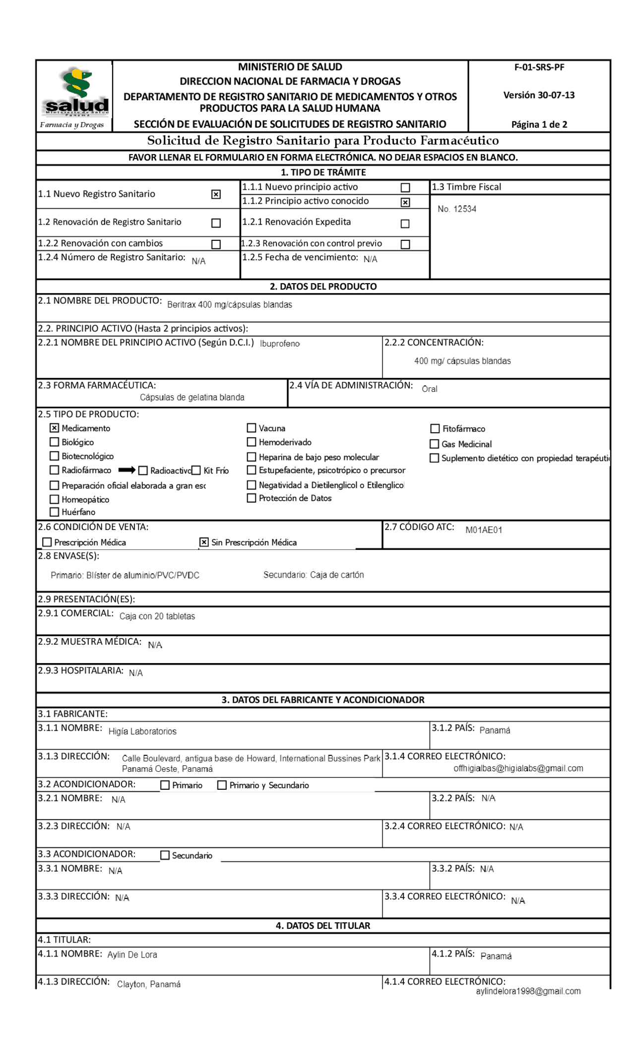 Formulario de solicitud de registro sanitario Apuntes de Farmacia Docsity