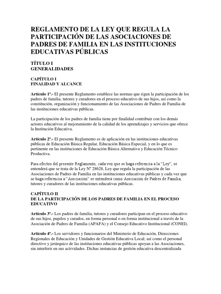 REGLAMENTO DE LA LEY QUE REGULA LA PARTICIPACIÓN DE LAS ASOCIACIONES DE PADRES DE FAMILIA EN LAS