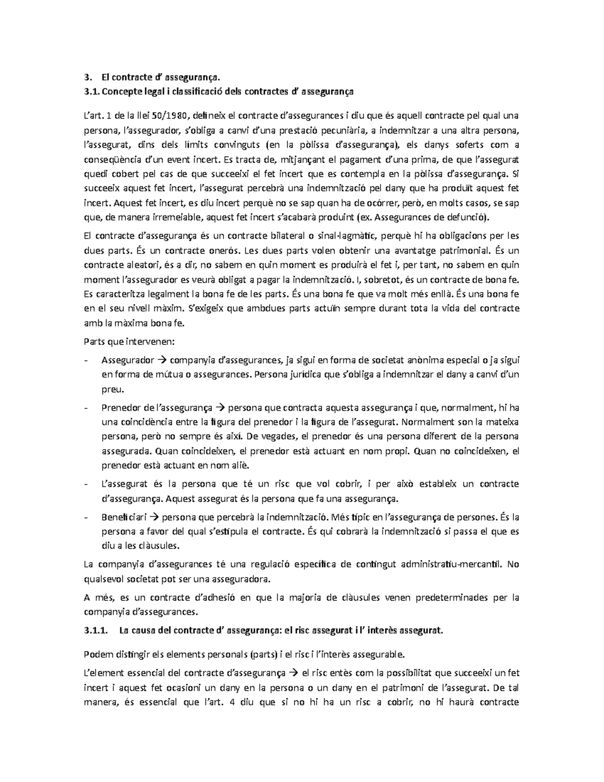 El contracte d'assegurances 3. El contracte assegurança. 3. Concepte legal i classificació