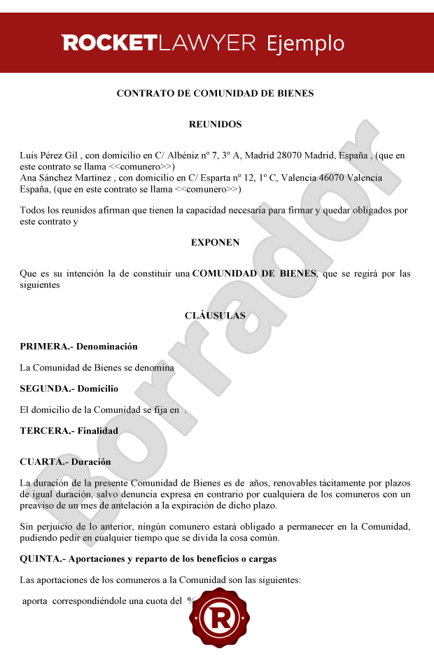 Per a la constitució de la comunitat de béns no és necessari fer cap aportació dinerària i es pot fer mitjançant un contracte privat entre els comuners.. (model 184) de l'exercici anterior, informant de les rendes que s'han obtingut i del repartiment d'ingressos i despeses entre els comuners, que anirà en funció del percentatge.