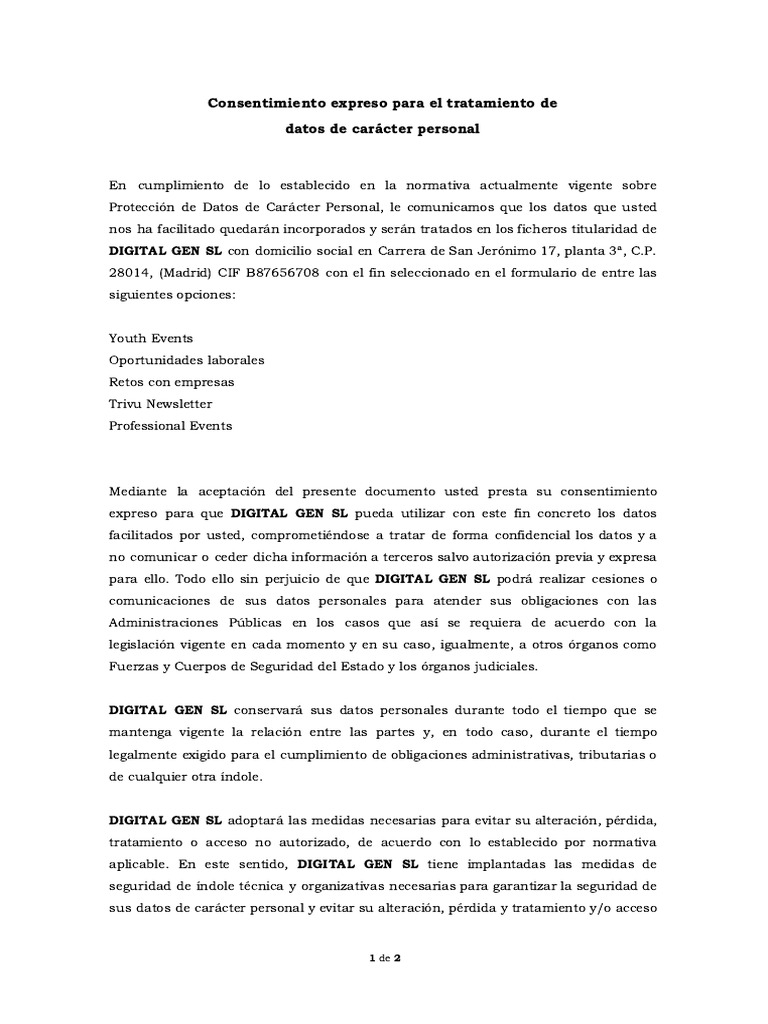 Modelo Consentimiento Tratamiento Datos Digital Gen PDF PDF