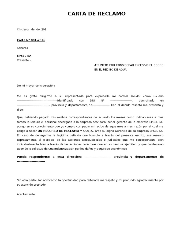 Ejemplo de Modelo de Carta de Reclamo Word. 1. Introducción al modelo de carta de reclamo En este apartado, se brindará una breve introducción explicando qué es un modelo de carta de reclamo y cuál es su importancia en el contexto legal en Perú. Se destacarán los aspectos fundamentales que deben incluirse en la carta para que sea.