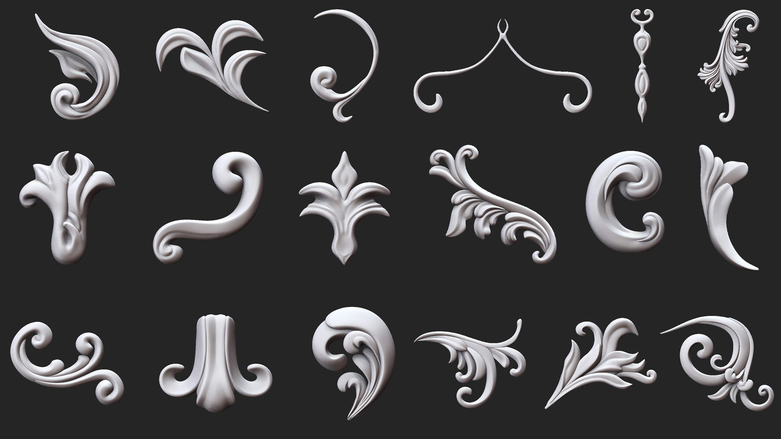 Ornaments Brushes - IMM Brushes + Ornament SetsIn this pack, you have access to 18 quality Ornament Imm Brushes.All brushes have a regular topology and are available with 4 subdivisions.Brushes are in the best condition in terms of the number of subdivisions.Also, you will get all brushes alpha, you have to import alpha in ZBrush and be ready to use.We created some ornament sets using these.
