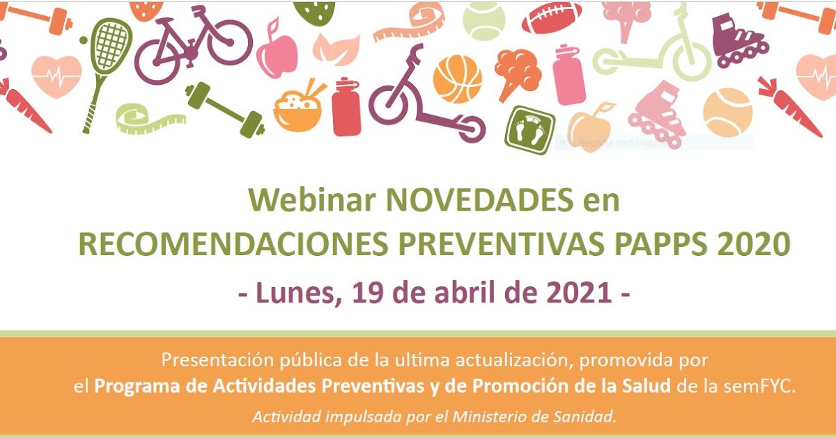 El Programa de Actividades Preventivas y de Promoción de la Salud (PAPPS) de la Sociedad Española de Medicina de Familia y Comunitaria (semFYC) y el Ministerio de Sanidad celebraron el 8 de mayo de 2023 el Webinar Novedades en recomendaciones preventivas PAPPS 2022 , donde se presentaron las nuevas recomendaciones preventivas PAPPS 2022.