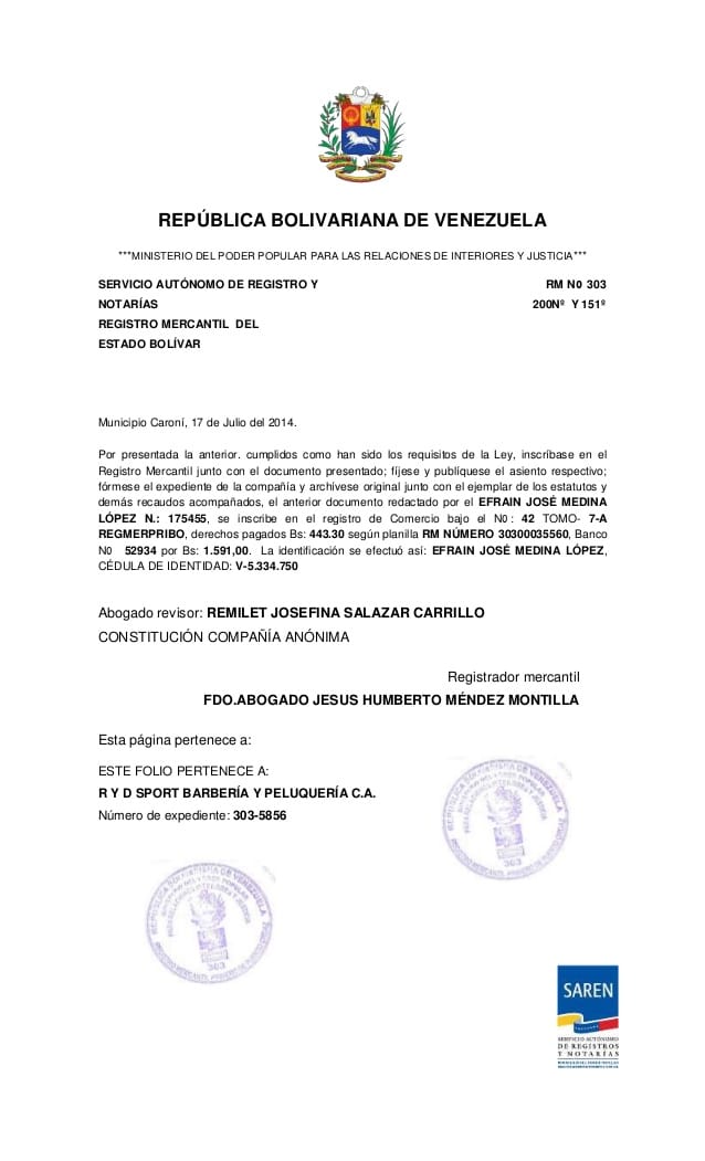 REGISTRO MERCANTIL EN VENEZUELA EJEMPLO