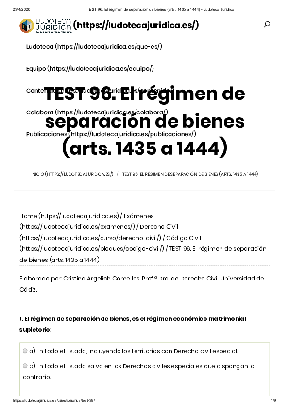(PDF) Test 96. El régimen de separación de bienes (arts. 14351444