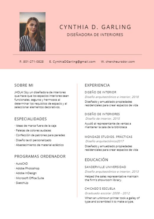 Currículum Vitae Ejemplo Sin Experiencia Laboral, Ejemplos de
