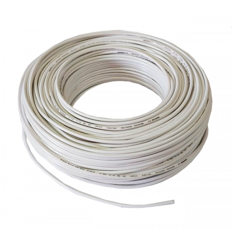 CABLE PLANO H05VVH2-F 2X1 BLANCO 25M. Comparar REF: 10317391.. 6,23 € IVA incluido. 6,55 € sin IVA. 0,79 € /Metro IVA incluido. Disponible próximamente. CABLE H05VV-F 2X1.5MM2 BLANCO 50M. Comparar REF: 10004603.. CABLE RV-K 2X2.5MM2 NEGRO 100M. Comparar REF: 10645271.