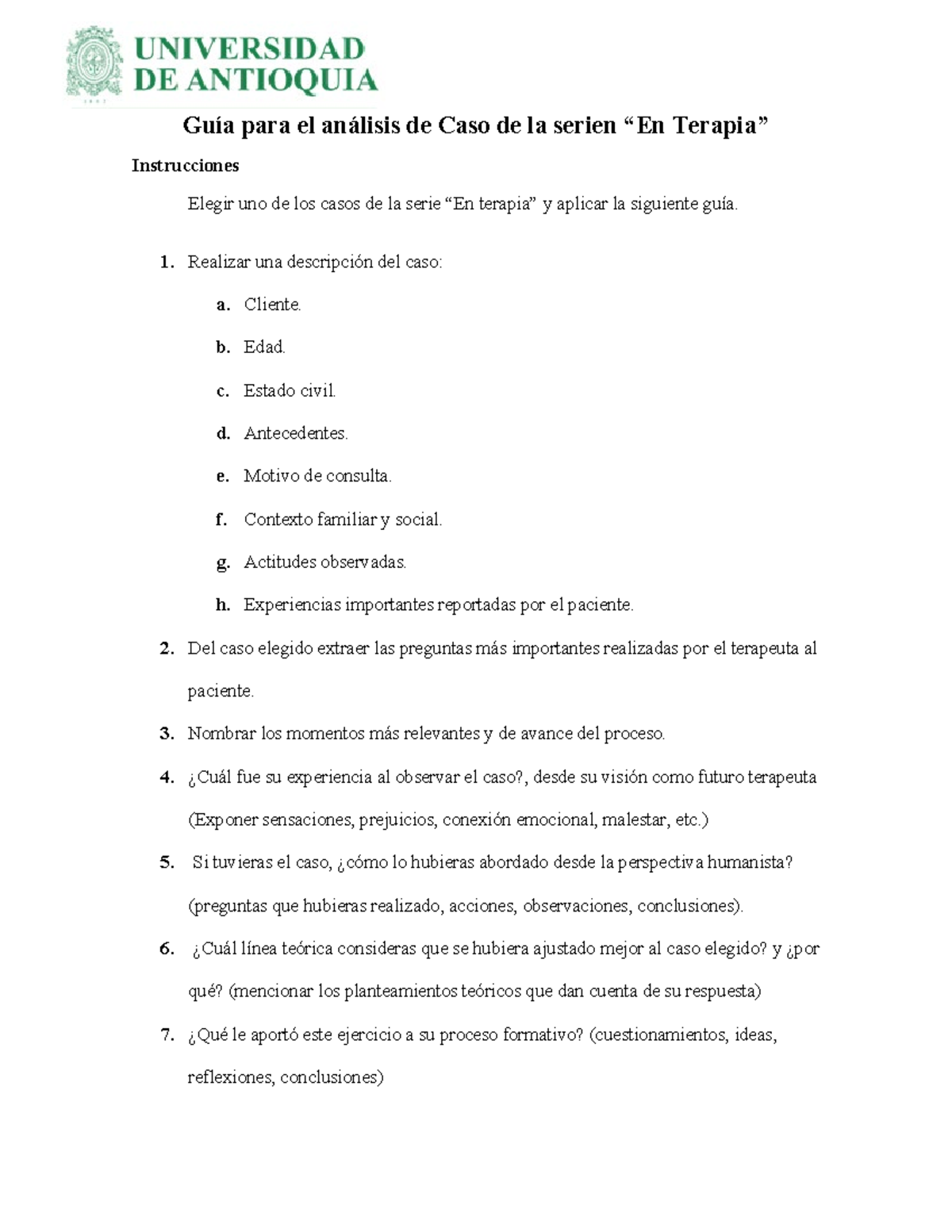 Guía Análisis de caso serie En Terapia Guía para el análisis de Caso