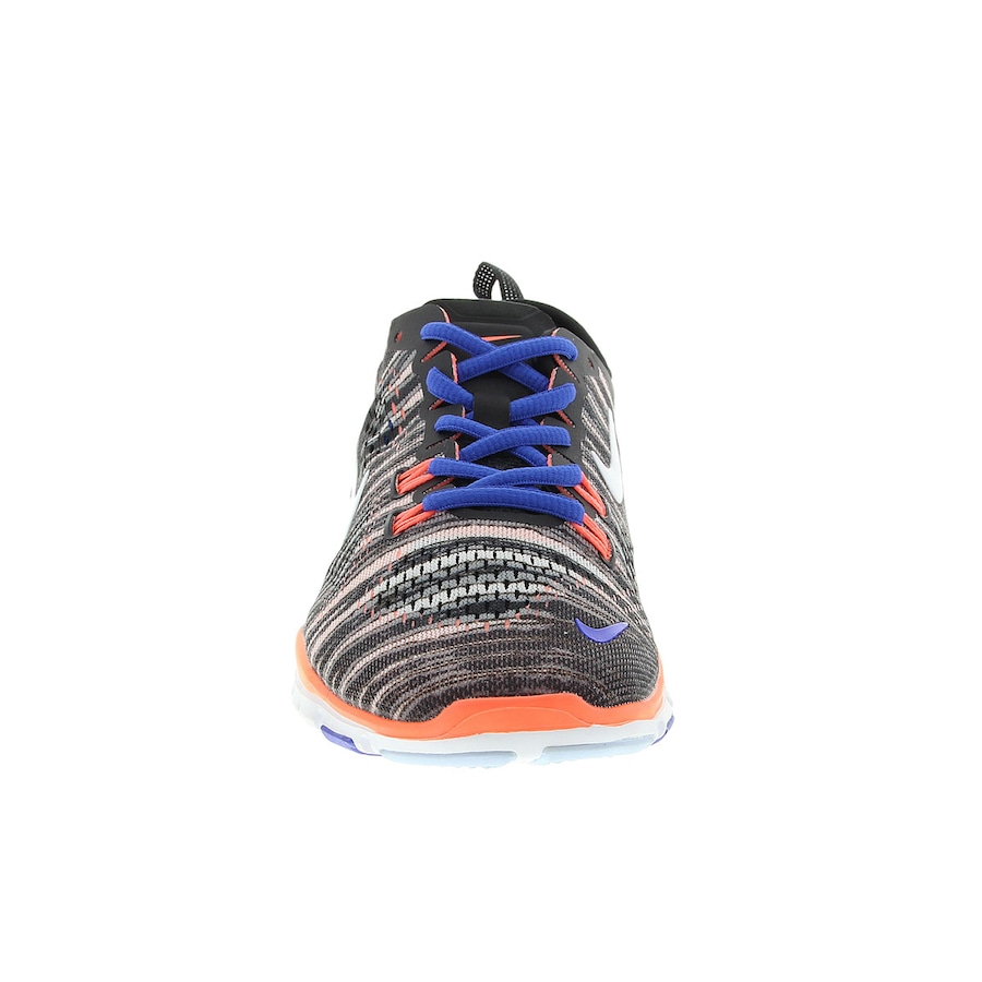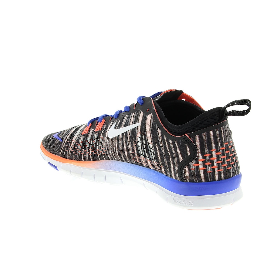 Nike Womens Free 5.0 Tr Fit 4 Prt - Black/White-Hyper Cobalt-Bright Mango The Nike Free TR 4 Print Women's Training Shoe features a flexible midsole and an all-new lightweight mesh upper engineered to support training-specific multidirectional movements, making it perfect for functional training, cardio, core work and other gym workouts..