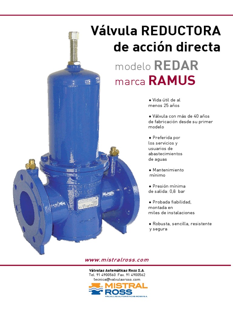 Válvula Reductora Ramus Redar Acero Pistón